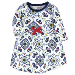 Touched By Nature Baby And Toddler Girl Organic Cotton Long-Sleeve Dresses 2pk, Pottery Tile