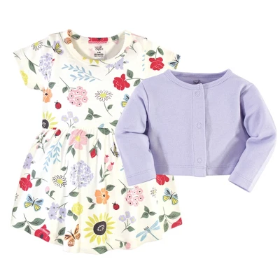 Touched by Nature dress and cardigan set is the cutest year-around outfit for your little girl. Both dress and cardigan are made from super soft 100% organic cotton. Dress is short-sleeved to keep cool while cardigan offers long sleeves and snap closure for cooler nights. Fun coordinating color and prints. Touched by Nature Baby and Toddler Girl Organic Cotton Dress and Cardigan 2pc Set, Flutter Garden is a great baby essentials set for your little one.