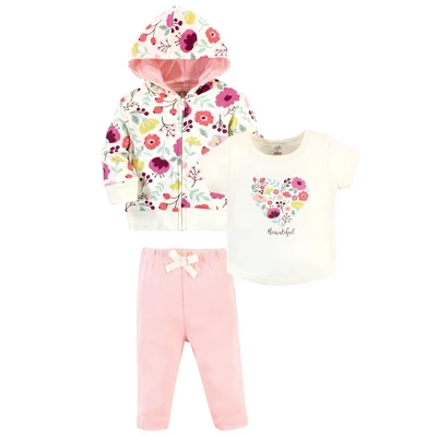 Touched by Nature organic cotton hoodie, bodysuit or tee top and pant is a great outfit for your little one. Made with 100% organic cotton, our layette set is optimal for wearing at home or as outer wear. Touched by Nature Baby and Toddler Girl Organic Cotton Hoodie, Bodysuit or Tee Top, and Pant, Botanical Toddler is a great baby and toddler essentials set for your little one.