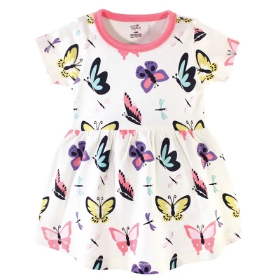 Touched by Nature is an organic clothing brand with beautifully designed clothing, bibs, blankets, hair accessories and socks made of premium organic cotton fabric. Organic cotton feels super soft on skin as the fibers are natural and breathable. Organic cotton is made without the use of synthetic pesticides and fertilizers, so it is an environmentally-friendly alternative compared to traditional farming methods. Touched by Nature organic cotton dress is made of 100 percent organic interlock cotton (exclusive of decoration) and the perfect outfit for your girl. Featuring adorable prints and stripes, our dresses are perfect outfits for special occasions because they are fashionable and comfortable to wear. Our dresses are made of premium fabrics and the most convenient construction for easy on and easy off. Make dress time more fun with Touched by Nature dresses. Touched by Nature Baby and Toddler Girl Organic Cotton Short-Sleeve Dresses 2pk, Butterflies and Dragonflies is a great baby essentials set for your little one.