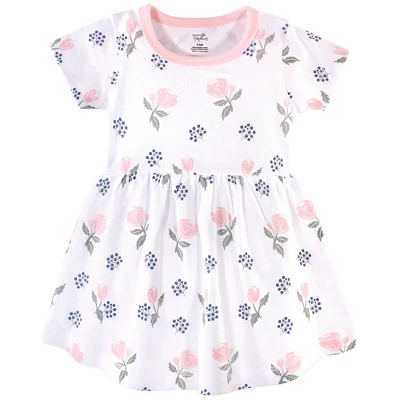 Touched by Nature is an organic clothing brand with beautifully designed clothing, bibs, blankets, hair accessories and socks made of premium organic cotton fabric. Organic cotton feels super soft on skin as the fibers are natural and breathable. Organic cotton is made without the use of synthetic pesticides and fertilizers, so it is an environmentally-friendly alternative compared to traditional farming methods. Touched by Nature organic cotton dress is made of 100 percent organic interlock cotton (exclusive of decoration) and the perfect outfit for your girl. Featuring adorable prints and stripes, our dresses are perfect outfits for special occasions because they are fashionable and comfortable to wear. Our dresses are made of premium fabrics and the most convenient construction for easy on and easy off. Make dress time more fun with Touched by Nature dresses. Touched by Nature Baby and Toddler Girl Organic Cotton Short-Sleeve Dresses 2pk, Rose and Berries is a great baby essentials set for your little one.