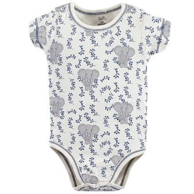 Touched by Nature offers soft organic cotton clothing for the gentlest touch on sensitive and delicate baby skin. Our organic bodysuits feature adorable prints, embroideries, stripes and solids and provide a comfortable base layer that’s great for pairing with pants, shorts, or even wearing under outfits. Our bodysuits are comfortable and cozy for all-day, everyday wear for your little one. Our bodysuits are an essential part of baby’s wardrobe. Touched by Nature Baby Boy Organic Cotton Bodysuits 3pk, Elephant is a great baby essentials set for your little one.