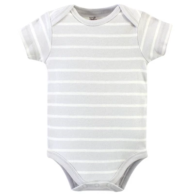 Touched by Nature offers soft organic cotton clothing for the gentlest touch on sensitive and delicate baby skin. Our organic bodysuits feature adorable prints, embroideries, stripes and solids and provide a comfortable base layer that’s great for pairing with pants, shorts, or even wearing under outfits. Our bodysuits are comfortable and cozy for all-day, everyday wear for your little one. Our bodysuits are an essential part of baby’s wardrobe. Touched by Nature Baby Boy Organic Cotton Bodysuits 5pk, Boho Fox is a great baby essentials set for your little one.