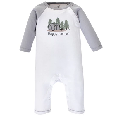 Touched by Nature offers soft organic cotton clothing for the gentlest touch on sensitive and delicate baby skin. Touched by Nature organic cotton union suit/coverall are super soft, comfortable and cozy 1-piece clothing for your little one. Made with organic cotton, our coveralls are gentle on your baby’s skin. Snap closures makes for easy dressing. Our 1-piece snap-up cotton coverall is great for playtime, tummy time, naps and bedtime. Our union suits are comfortable and cozy for all-day, everyday wear for your little one. Touched by Nature Baby Boy Organic Cotton Coveralls 3pk, Happy Camper is a great baby essentials set for your little one.