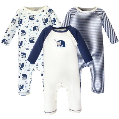 Touched by Nature offers soft organic cotton clothing for the gentlest touch on sensitive and delicate baby skin. Touched by Nature organic cotton union suit/coverall are super soft, comfortable and cozy 1-piece clothing for your little one. Made with organic cotton, our coveralls are gentle on your baby’s skin. Snap closures makes for easy dressing. Our 1-piece snap-up cotton coverall is great for playtime, tummy time, naps and bedtime. Our union suits are comfortable and cozy for all-day, everyday wear for your little one. Touched by Nature Baby Boy Organic Cotton Coveralls 3pk, Woodland is a great baby essentials set for your little one.