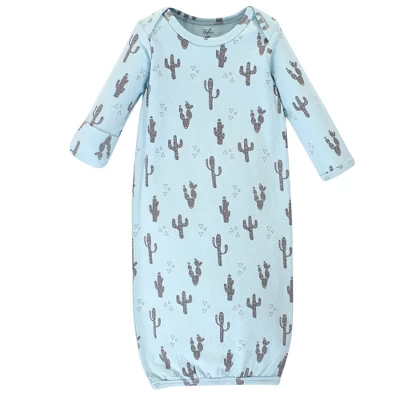 Touched by Nature organic cotton gowns feature playful patterns for sweet dreams. Our organic fabric is super-soft and gentle on baby’s skin, making sleep time cozy and comfortable. The elastic band at the bottom and a lap neck make dressing and diaper changes a breeze. Our preemie gowns are suitable for preemies and newborns from 6 to 9 pounds. Our 0-6 month gowns run a bit larger so they last until your baby turns 6 months old. Our gowns are made of 100% cotton, so some shrinking should be expected. Touched by Nature Baby Boy Organic Cotton Long-Sleeve Gowns 3pk, Cactus Llama is a great baby essentials set for your little one.