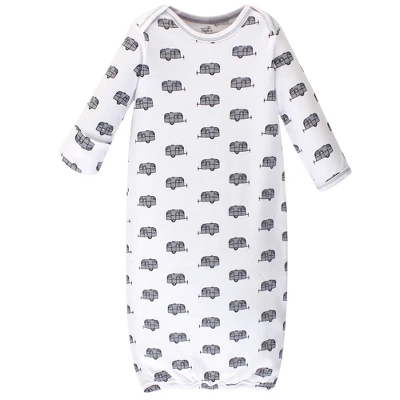 Touched by Nature organic cotton gowns feature playful patterns for sweet dreams. Our organic fabric is super-soft and gentle on baby’s skin, making sleep time cozy and comfortable. The elastic band at the bottom and a lap neck make dressing and diaper changes a breeze. Our preemie gowns are suitable for preemies and newborns from 6 to 9 pounds. Our 0-6 month gowns run a bit larger so they last until your baby turns 6 months old. Our gowns are made of 100% cotton, so some shrinking should be expected. Touched by Nature Baby Boy Organic Cotton Long-Sleeve Gowns 3pk, Happy Camper, 0-6 Months is a great baby essentials set for your little one.