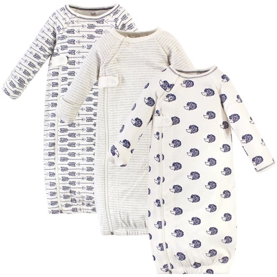 Touched by Nature organic cotton zipper gowns feature playful patterns for sweet dreams. Our organic fabric is super-soft and gentle on baby’s skin, making sleep time cozy and comfortable. The zipper makes for easy on and easy off, the elastic band at the bottom and a lap neck make dressing and diaper changes a breeze. Our preemie gowns are suitable for preemies and newborns from 6 to 9 pounds. Our 0-6 month gowns run a bit larger so they can last you up until your baby turns 6 months old. Our gowns are made of 100% cotton, so some shrinking should be expected. Touched by Nature Baby Boy Organic Cotton Zipper Long-Sleeve Gowns 3pk, Hedgehog Side Zipper is a great baby essentials set for your little one.