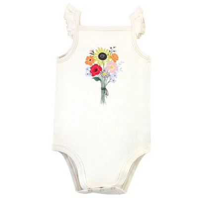 Touched by Nature offers soft organic cotton clothing for the gentlest touch on sensitive and delicate baby skin. Our organic bodysuits feature adorable prints, embroideries, stripes and solids and provide a comfortable base layer that’s great for pairing with pants, shorts, or even wearing under outfits. Our bodysuits are comfortable and cozy for all-day, everyday wear for your little one. Our bodysuits are an essential part of baby’s wardrobe. Touched by Nature Baby Girl Organic Cotton Bodysuits 5pk, Flutter Garden is a great baby essentials set for your little one.