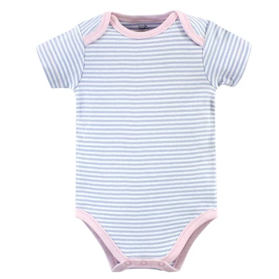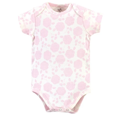 Touched by Nature offers soft organic cotton clothing for the gentlest touch on sensitive and delicate baby skin. Our organic bodysuits feature adorable prints, embroideries, stripes and solids and provide a comfortable base layer that’s great for pairing with pants, shorts, or even wearing under outfits. Our bodysuits are comfortable and cozy for all-day, everyday wear for your little one. Our bodysuits are an essential part of baby’s wardrobe. Touched by Nature Baby Girl Organic Cotton Bodysuits 5pk, Pink Rose is a great baby essentials set for your little one.