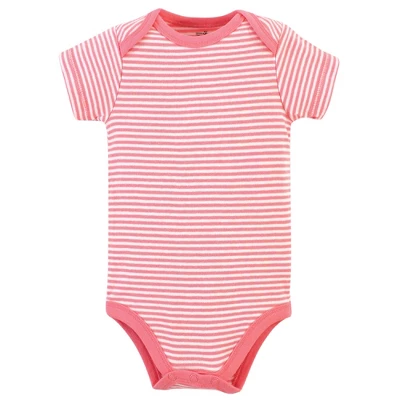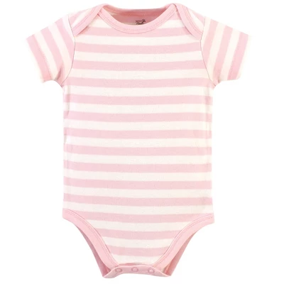 Touched by Nature offers soft organic cotton clothing for the gentlest touch on sensitive and delicate baby skin. Our organic bodysuits feature adorable prints, embroideries, stripes and solids and provide a comfortable base layer that’s great for pairing with pants, shorts, or even wearing under outfits. Our bodysuits are comfortable and cozy for all-day, everyday wear for your little one. Our bodysuits are an essential part of baby’s wardrobe. Touched by Nature Baby Girl Organic Cotton Bodysuits 5pk, Rosebud is a great baby essentials set for your little one.