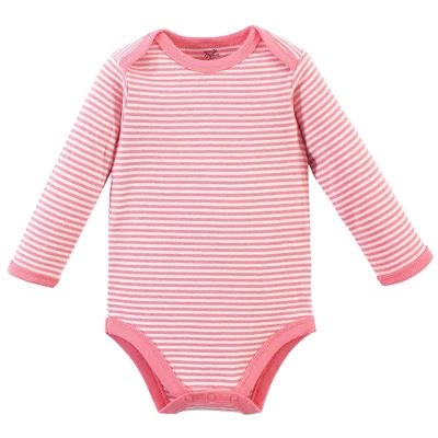 Touched by Nature offers soft organic cotton clothing for the gentlest touch on sensitive and delicate baby skin. Our organic bodysuits feature adorable prints, embroideries, stripes and solids and provide a comfortable base layer that’s great for pairing with pants, shorts, or even wearing under outfits. Our bodysuits are comfortable and cozy for all-day, everyday wear for your little one. Our bodysuits are an essential part of baby’s wardrobe. Touched by Nature Baby Girl Organic Cotton Long-Sleeve Bodysuits 5pk, Rosebud is a great baby essentials set for your little one.