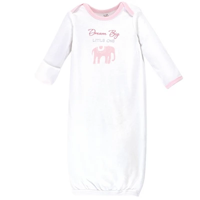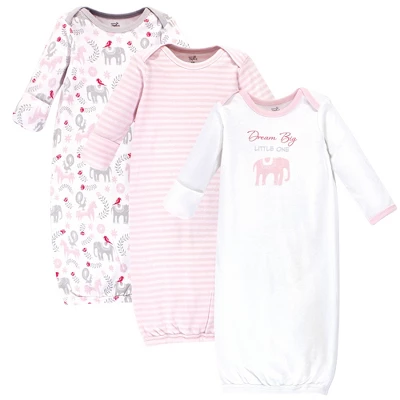 Touched by Nature organic cotton gowns feature playful patterns for sweet dreams. Our organic fabric is super-soft and gentle on baby’s skin, making sleep time cozy and comfortable. The elastic band at the bottom and a lap neck make dressing and diaper changes a breeze. Our preemie gowns are suitable for preemies and newborns from 6 to 9 pounds. Our 0-6 month gowns run a bit larger so they last until your baby turns 6 months old. Our gowns are made of 100% cotton, so some shrinking should be expected. Touched by Nature Baby Girl Organic Cotton Long-Sleeve Gowns 3pk, Elephant is a great baby essentials set for your little one.