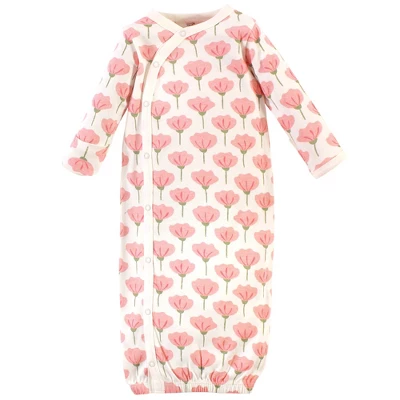 Touched by Nature organic cotton Side-Closure Snap gowns feature playful patterns for sweet dreams. Our organic fabric is super-soft and gentle on baby’s skin, making sleep time cozy and comfortable. The snaps make for easy on and easy off, the elastic band at the bottom and a lap neck make dressing and diaper changes a breeze. Our preemie gowns are suitable for preemies and newborns from 6 to 9 pounds. Our 0-6 month gowns run a bit larger so they can last you up until your baby turns 6 months old. Our gowns are made of 100% cotton, so some shrinking should be expected. Touched by Nature Baby Girl Organic Cotton Side-Closure Snap Long-Sleeve Gowns 3pk, Tulip is a great baby essentials set for your little one.