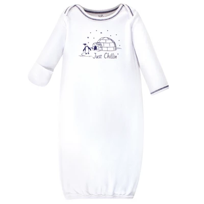 Touched by Nature organic cotton gowns feature playful patterns for sweet dreams. Our organic fabric is super-soft and gentle on baby’s skin, making sleep time cozy and comfortable. The elastic band at the bottom and a lap neck make dressing and diaper changes a breeze. Our preemie gowns are suitable for preemies and newborns from 6 to 9 pounds. Our 0-6 month gowns run a bit larger so they last until your baby turns 6 months old. Our gowns are made of 100% cotton, so some shrinking should be expected. Touched by Nature Baby Organic Cotton Long-Sleeve Gowns 3pk, Arctic is a great baby essentials set for your little one. Touched by Nature offers the widest assortment in Christmas apparel, Christmas outfits and sweaters, Christmas pajamas, Christmas blankets and throw blankets, and Christmas socks. Our vast product assortment for babies, toddlers and kids make for great stocking stuffers for the whole family.