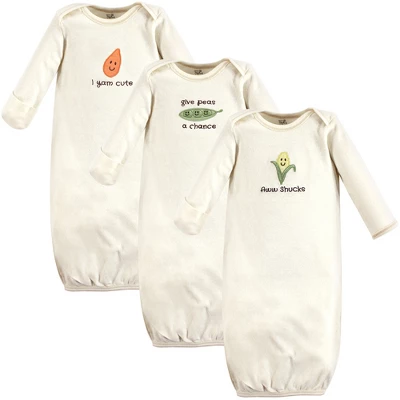 Touched by Nature organic cotton gowns feature playful patterns for sweet dreams. Our organic fabric is super-soft and gentle on baby’s skin, making sleep time cozy and comfortable. The elastic band at the bottom and a lap neck make dressing and diaper changes a breeze. Our preemie gowns are suitable for preemies and newborns from 6 to 9 pounds. Our 0-6 month gowns run a bit larger so they last until your baby turns 6 months old. Our gowns are made of 100% cotton, so some shrinking should be expected. Touched by Nature Baby Organic Cotton Long-Sleeve Gowns 3pk, Corn, 0-6 Months is a great baby essentials set for your little one.