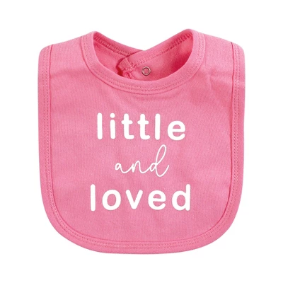 - Set includes coordinated organic cotton bibs
