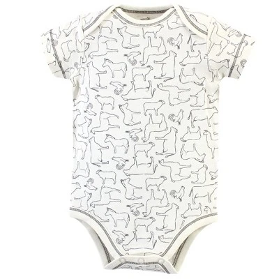 Touched by Nature offers soft organic cotton clothing for the gentlest touch on sensitive and delicate baby skin. Our organic bodysuits feature adorable prints, embroideries, stripes and solids and provide a comfortable base layer that’s great for pairing with pants, shorts, or even wearing under outfits. Our bodysuits are comfortable and cozy for all-day, everyday wear for your little one. Our bodysuits are an essential part of baby’s wardrobe. Touched by Nature Organic Cotton Bodysuits 5pk, Farm Friends is a great baby essentials set for your little one.
