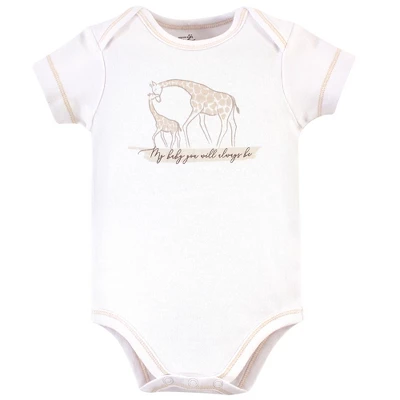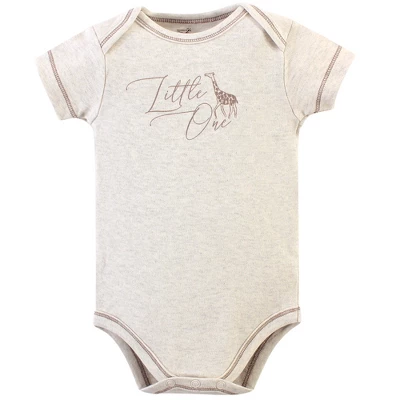 Touched by Nature offers soft organic cotton clothing for the gentlest touch on sensitive and delicate baby skin. Our organic bodysuits feature adorable prints, embroideries, stripes and solids and provide a comfortable base layer that’s great for pairing with pants, shorts, or even wearing under outfits. Our bodysuits are comfortable and cozy for all-day, everyday wear for your little one. Our bodysuits are an essential part of baby’s wardrobe. Touched by Nature Organic Cotton Bodysuits 5pk, Little Giraffe is a great baby essentials set for your little one.