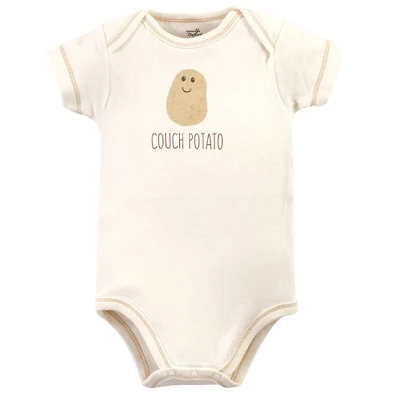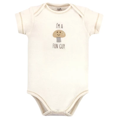Touched by Nature offers soft organic cotton clothing for the gentlest touch on sensitive and delicate baby skin. Our organic bodysuits feature adorable prints, embroideries, stripes and solids and provide a comfortable base layer that’s great for pairing with pants, shorts, or even wearing under outfits. Our bodysuits are comfortable and cozy for all-day, everyday wear for your little one. Our bodysuits are an essential part of baby’s wardrobe. Touched by Nature Organic Cotton Bodysuits 5pk, Mushroom is a great baby essentials set for your little one.