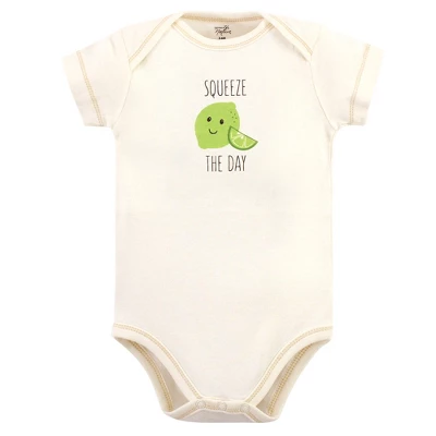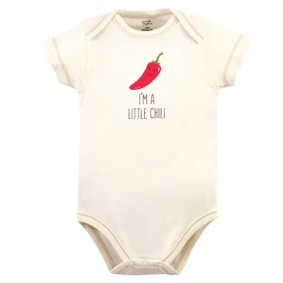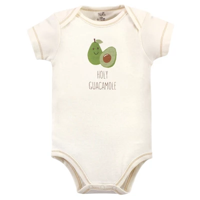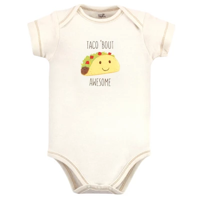 Touched by Nature offers soft organic cotton clothing for the gentlest touch on sensitive and delicate baby skin. Our organic bodysuits feature adorable prints, embroideries, stripes and solids and provide a comfortable base layer that’s great for pairing with pants, shorts, or even wearing under outfits. Our bodysuits are comfortable and cozy for all-day, everyday wear for your little one. Our bodysuits are an essential part of baby’s wardrobe. Touched by Nature Organic Cotton Bodysuits 5pk, Taco is a great baby essentials set for your little one.