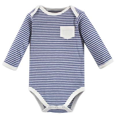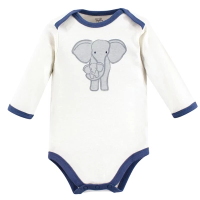 Touched by Nature offers soft organic cotton clothing for the gentlest touch on sensitive and delicate baby skin. Our organic bodysuits feature adorable prints, embroideries, stripes and solids and provide a comfortable base layer that’s great for pairing with pants, shorts, or even wearing under outfits. Our bodysuits are comfortable and cozy for all-day, everyday wear for your little one. Our bodysuits are an essential part of baby’s wardrobe. Touched by Nature Organic Cotton Long-Sleeve Bodysuits 3pk, Elephant is a great baby essentials set for your little one.