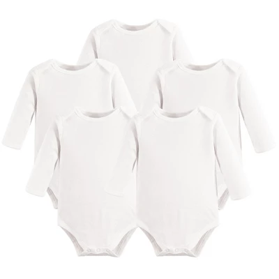 Touched by Nature offers soft organic cotton clothing for the gentlest touch on sensitive and delicate baby skin. Our organic bodysuits feature adorable prints, embroideries, stripes and solids and provide a comfortable base layer that’s great for pairing with pants, shorts, or even wearing under outfits. Our bodysuits are comfortable and cozy for all-day, everyday wear for your little one. Our bodysuits are an essential part of baby’s wardrobe. Touched by Nature Organic Cotton Long-Sleeve Bodysuits 5pk, White is a great baby essentials set for your little one.